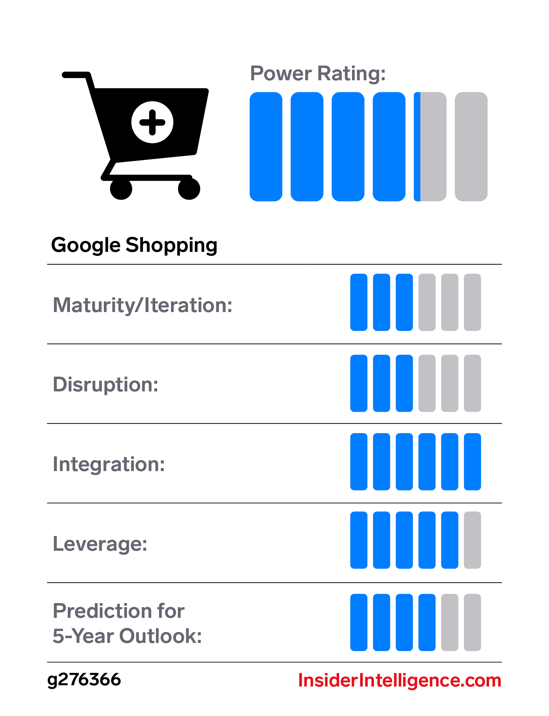 Note: Our analysts assessed 23 of Alphabet’s business divisions based on five factors: maturity/iteration; disruption; integration; leverage; and prediction for a 5-year outlook. The scale used for the 5-year outlook power rating is: 1=Out of business; 3=Leader; 6=Massive growth. The 5 year outlook takes into account all aspects of the business analyzed, as well as our analysts’ knowledge of the competitive landscape for each division.