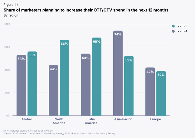 CTV continues to grow as a key player in this ecosystem. Marketers are shifting budgets toward streaming, but simply adding CTV isn’t enough. Its impact must be measured and integrated with other channels. To support this, Nielsen recently expanded Ad Intel to cover more than 20 individual platforms representing 95% of the US CTV market. This transparency lets marketers see where and how brands are allocating their budgets, and which platforms capture the most spend.