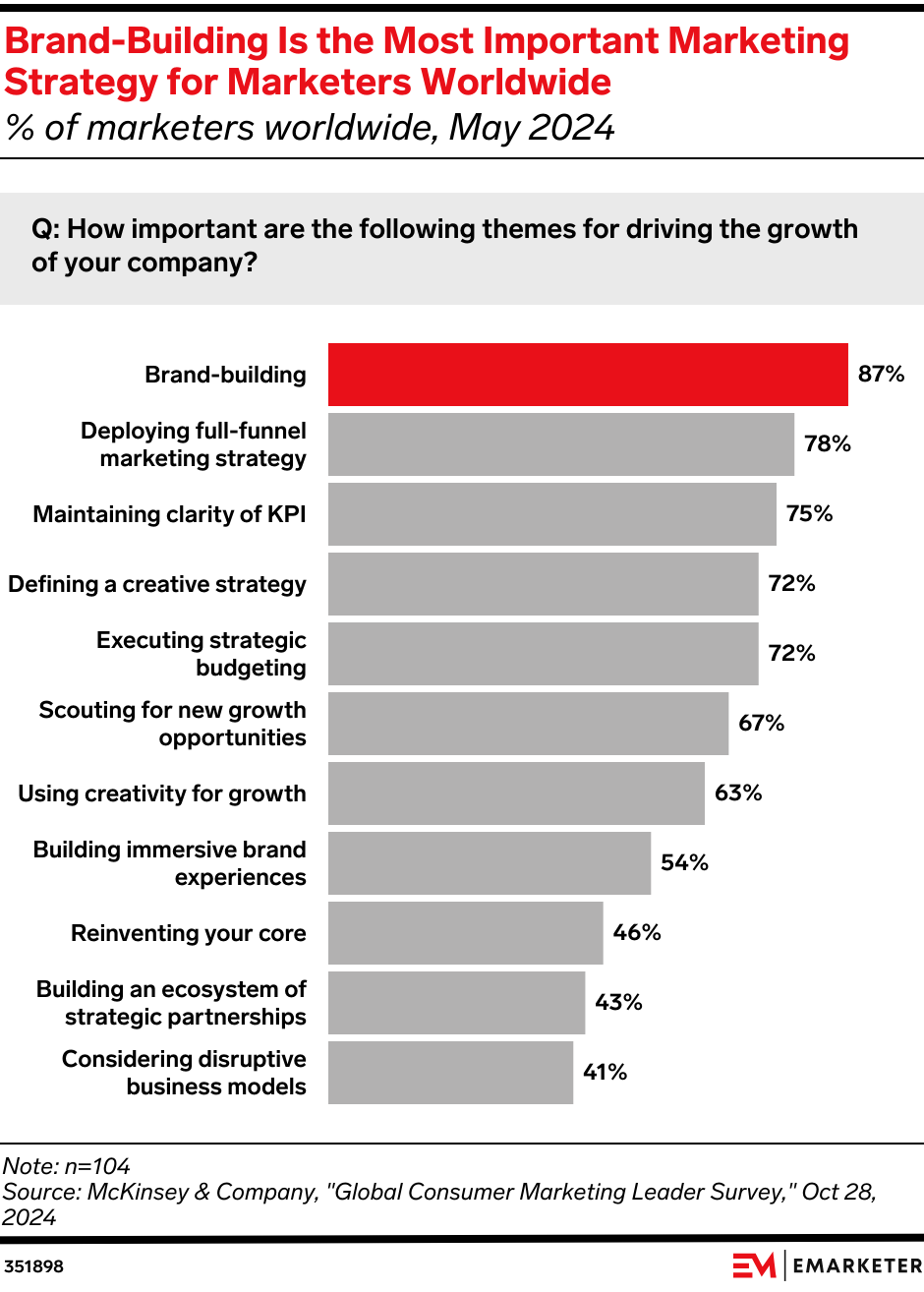 Key Stat: Boldness and bravery are essential for brand-building, which is the most important growth strategy for 87% of marketers worldwide, per McKinsey & Company.