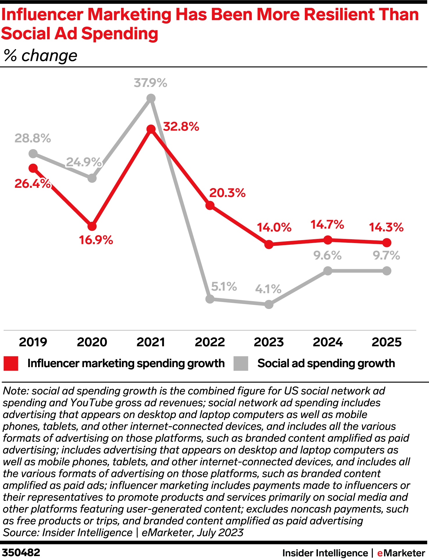 KEY STAT: Spending on sponsored social media content in the US will grow roughly 3.5 times faster in 2023 than social ad spending will—and it will remain ahead through 2025.