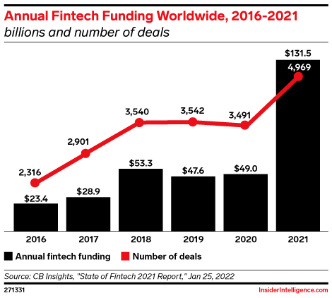 KEY STAT: Global fintech raised $94.7 billion in the first three quarters of 2021, just $200 million less than the past two years combined.