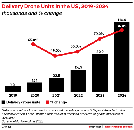 KEY STAT: Drone delivery hit an inflection point in 2022, and growth will accelerate over the next three years.