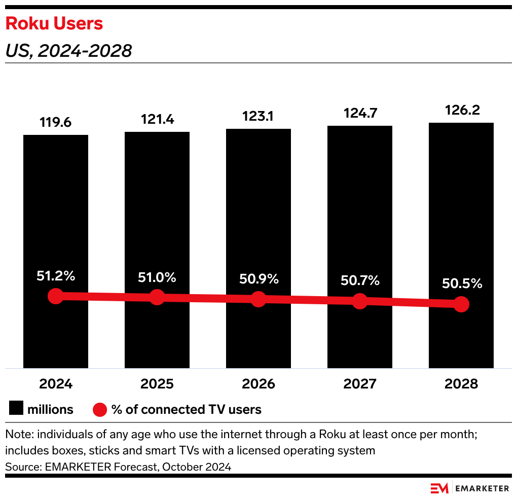 Our take: While Roku faces a rapidly changing market, strong penetration and command of 121.4 million US viewers—the most of any CTV platform, per our forecast—means it will remain an appealing platform for advertisers and content providers.