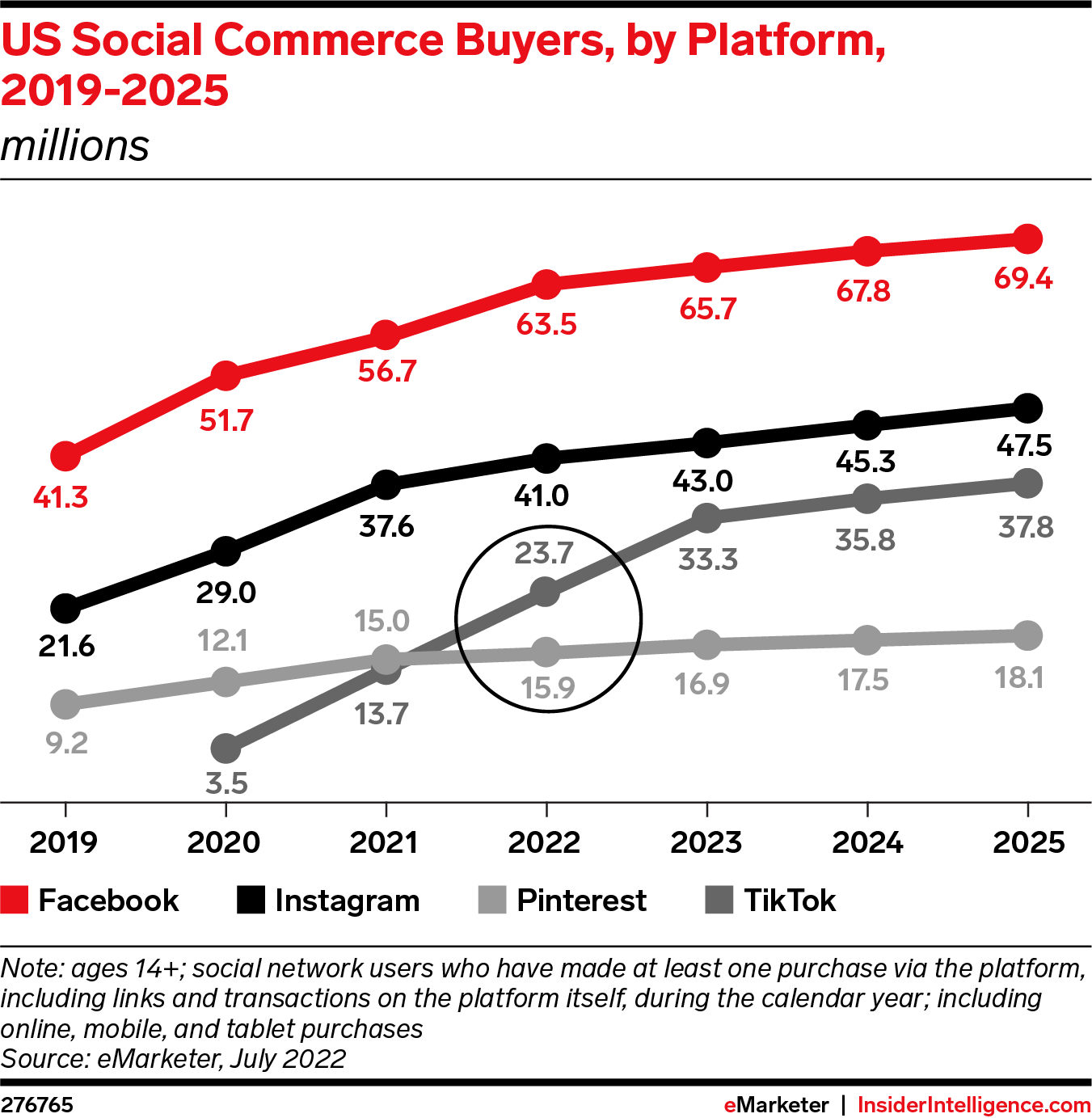 The pandemic-related influx of new buyers won’t continue in 2022—except on TikTok. Even so, social commerce sales will continue to rise as current buyers spend more on purchases every year. Brands that can play to the strengths of each platform’s commerce experience will be able to squeeze more spending from customers.