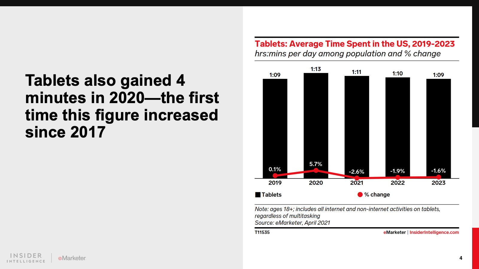 KEY STAT: The average time spent with mobile increased by 31 minutes in 2020 to reach 4 hours and 16 minutes for US adults—and the gains are sticky. Growth will slow this year, but from a much higher baseline.
