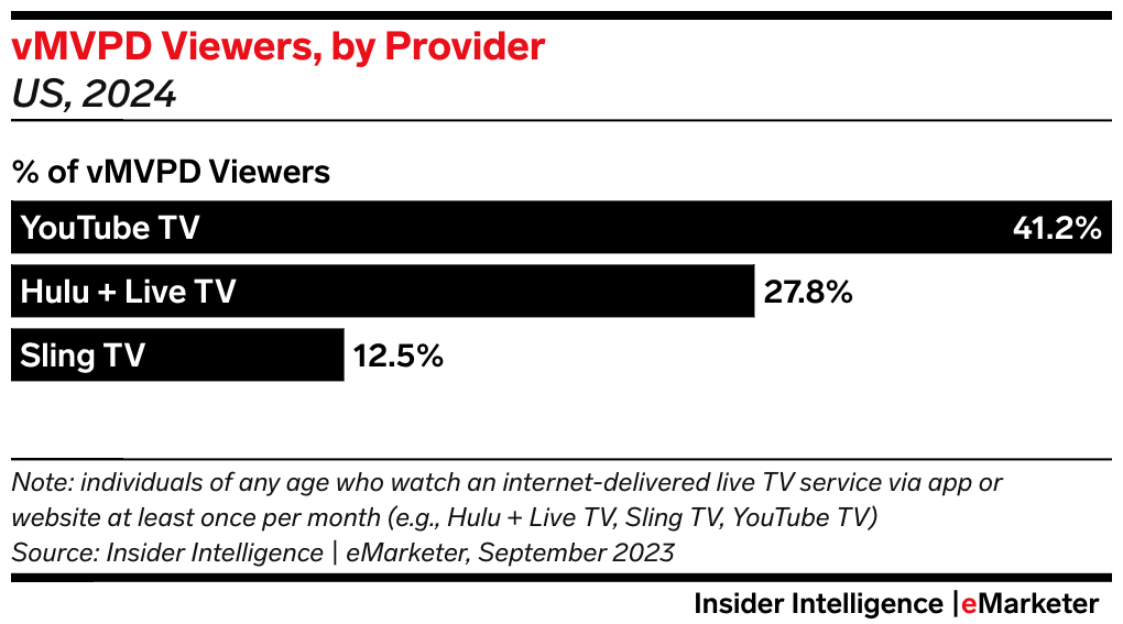 In subscription revenues and viewers, YouTube TV has distanced itself from the digital pay TV pack. Digital pay TV is synonymous with a virtual multichannel video programming distributor (vMVPD). It refers to digitally delivered live TV services like YouTube TV and Sling TV.