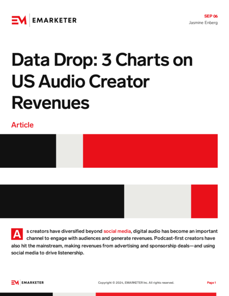 Contrary to popular belief, not every creator has a podcast. But those who do are a driving force behind the roughly $1.50 billion US creators will generate from digital audio distribution channels this year.